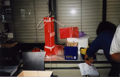 The physical supportAs we explained before Icarus is composed by three distinct parts: the balloon, the parachute and a box that contains the electronics (remember we call it Wally because that's what we had to find and get back). What we didn't say was that we also built two radar reflectors, just in case ;-). These are simply squares with a kitchen silver leaf in one side and an orange paper on the other side. We went to a McDonald's and borrowed two straws; for each straw we glued three silver-and-orange squares. Now to the box.
